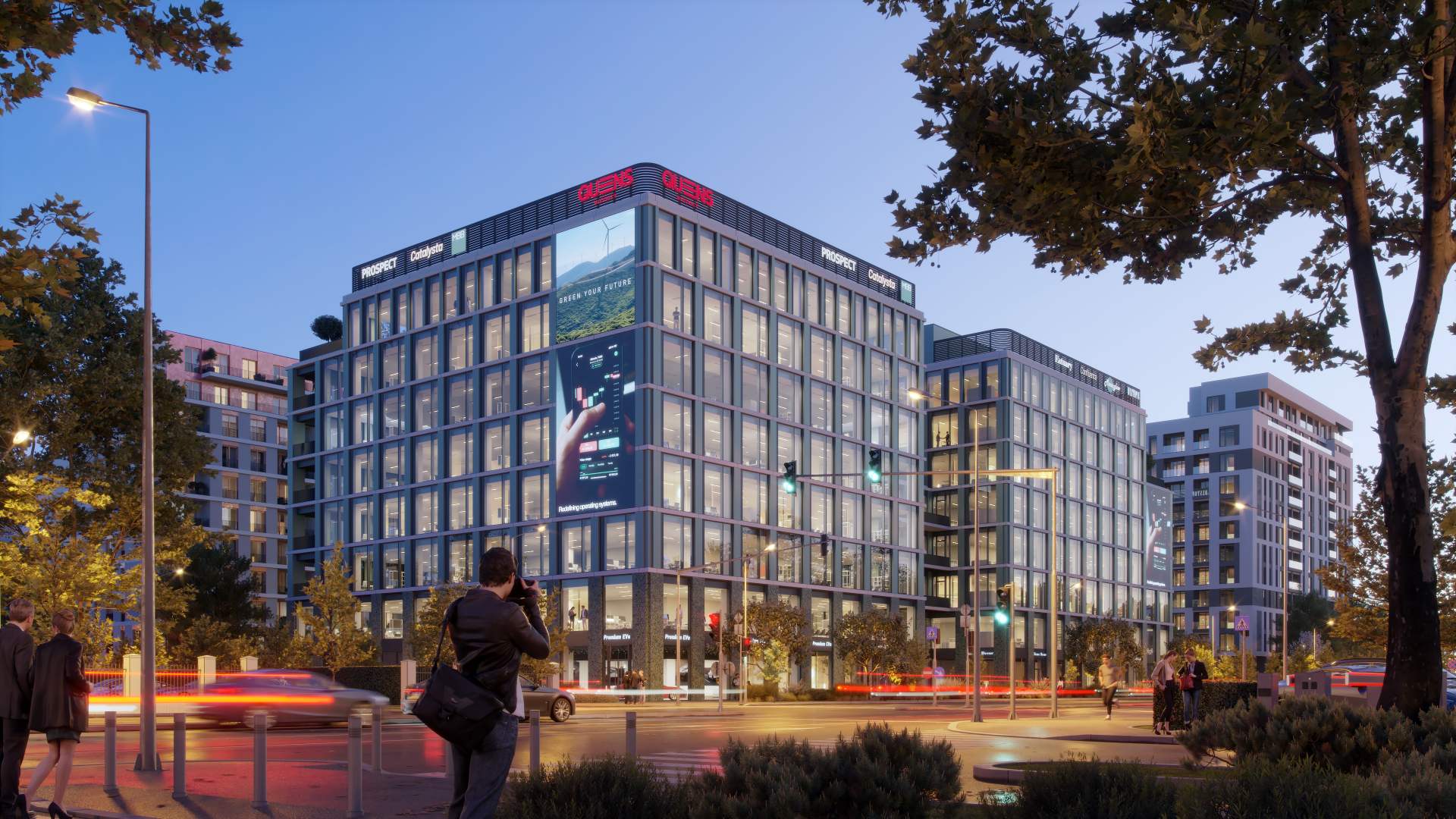 Componenta office a proiectului, QUEENS District Office, cuprinde două corpuri de 7 etaje, cu suprafețe pe etaj între 1.250 și 3.300 mp, și 282 de locuri de parcare, și a obținut deja certificarea BREEAM Excellent pentru faza de design, confirmând angajamentul SPEEDWELL pentru performanță și responsabilitate.